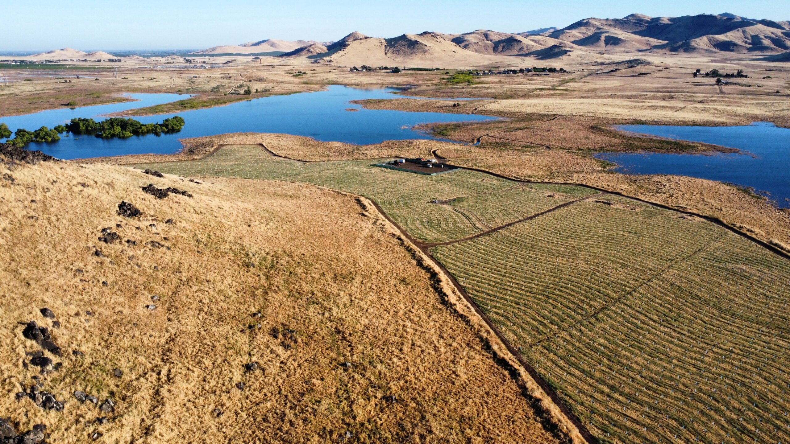 A 138-acre habitat mitigation project with 2 sites being mitigated for Atriplex Complex and Riparian Forest. The major work elements included collecting propagules, propagating seedlings, providing 2 water wells, 2 design-build irrigation systems, installing and housing over 30,000 container plants, 138-acres of grass seeding, installing over 5-miles of permanent livestock fences and maintaining the features and the plants for a 5-year period of service, including a multi-year establishment period. Maintenance and establishment tasks include watering, weeding, mowing, replacing dead plants, reporting, and cleanup. We are currently in the planting and irrigation phase of this project performing work as the Prime Contractor.